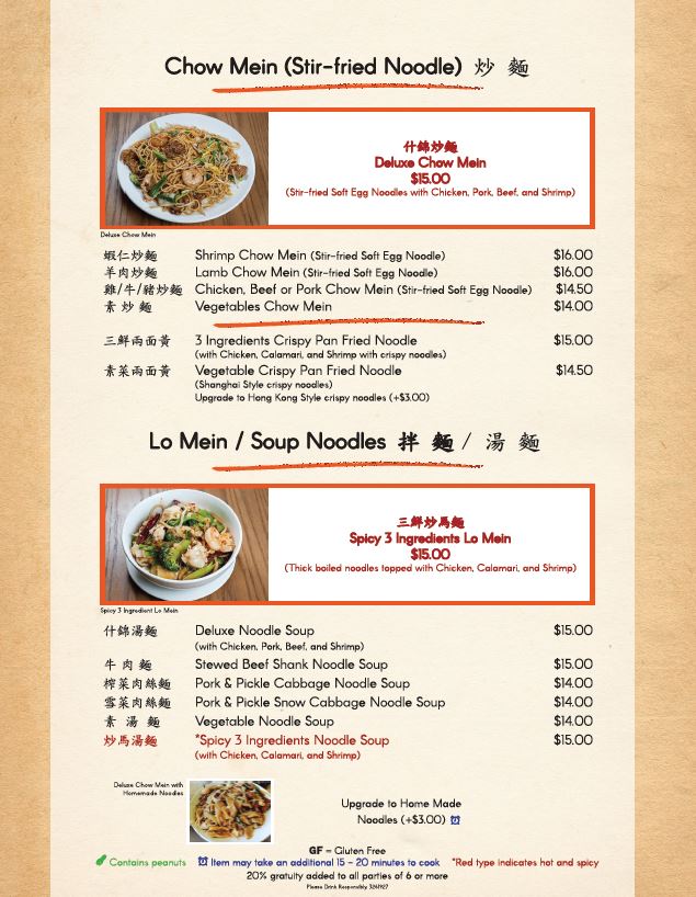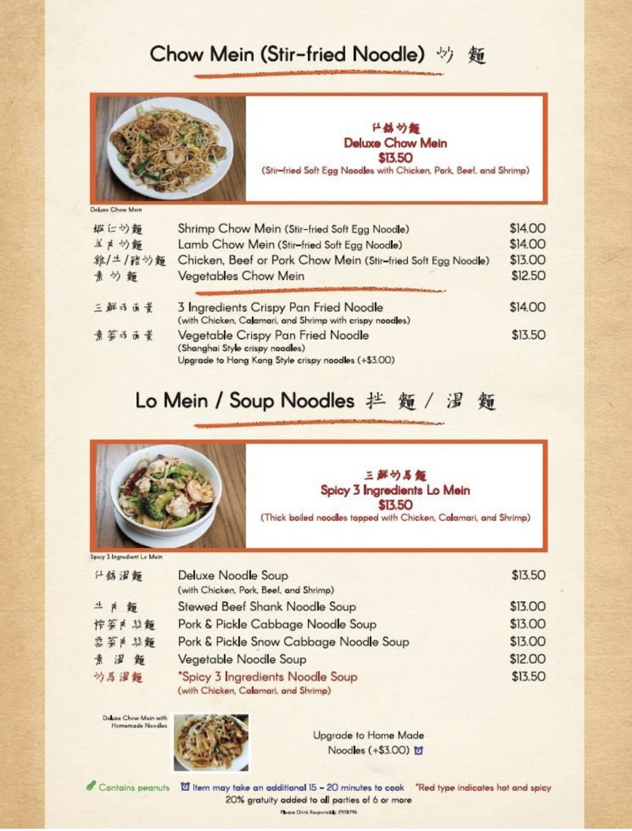 No meal is complete without a side of either fried or steamed rice, and the restaurant offers various choices including Deluxe Fried Rice packed with an enticing mix of chicken, pork, beef, and shrimp. Plus, for those looking to indulge, the homemade noodles are a must-add for your noodle dishes or soups for a small extra charge.